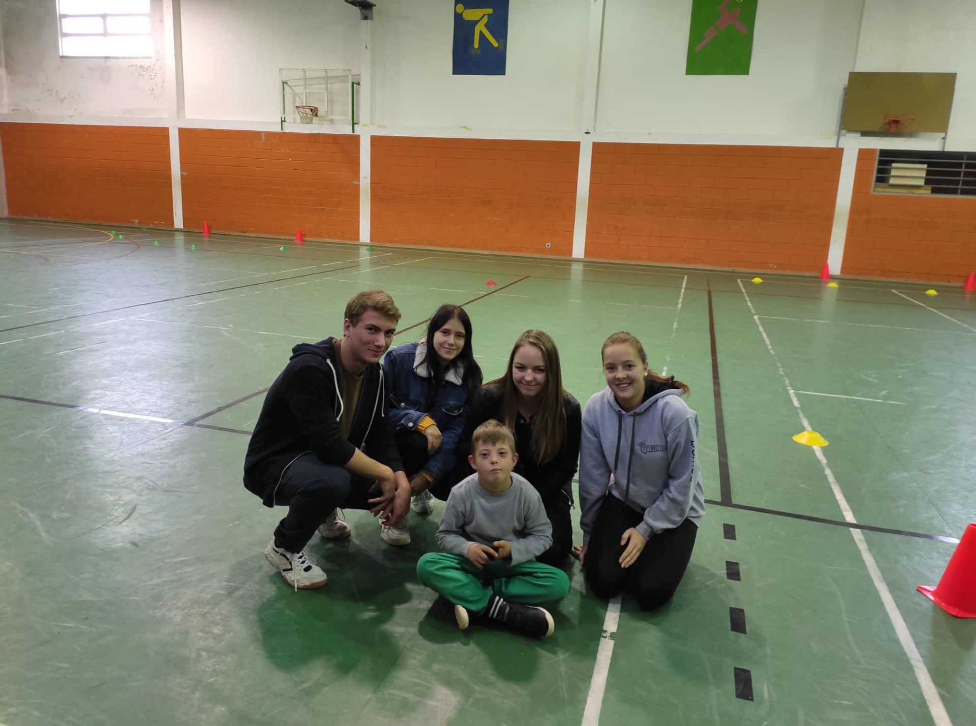 Dnes ráno jsme v 9:00 dorazili na naše pracoviště - do sportovního pavilónu, kde už probíhala hodina tělocviku. Děti zrovna hrály badminton, tak jsme si vzali badmintonové pálky a přidali se k nim. Následující hodinu zde přišly už trochu starší děti a paní učitelka Marta nám nabídla, že se můžeme zapojit do hodiny basketbalu. Samozřejmě jsme s nadšením souhlasili. To jsme ale nevěděli co nás čeká. Jako první jsme hráli hru na chytanou, kde jsme opravdu hodně běhali a po 15 minutách už z nás tekl pot. Dále proběhla důkladná rozcvička. Zatímco pak kluci hráli basketbal, holky se učily techniku hodu na koš a jak si správně přihrávat. Potom se kluci s holkami vyměnili. Museli jsme uznat, že místní holky jsou v basketbalu opravdu dobré. Po 30 minutách opravdu náročné hry, jsme si mysleli, že si konečně odpočineme. Ale omyl. Následovalo cvičení na posilování nohou a celého těla. U tohoto cvičení jsme se taky pěkně zpotili, a když jsme se podívali na žáky, vůbec zpocení nebyli. Po celé hodině tělocviku jsme byli strašně unavení a zpocení, ale měli jsme radost z toho, že jsme se pořádně rozhýbali. Další hodinu jsme měli volnou, ale přišel zde žák s Downovým syndromem na individuální hodinu tělocviku. Hráli jsme spolu hru, která funguje na stejném principu jako náš český petang. Tenhle klučina byl moc fajn a vtipný, a skvěle mu to šlo. Potom jsme si spolu házeli míčem. Na závěr už se s námi hned rozloučil a každému z nás věnoval pusu na líčko. Po obědě proběhl kroužek gymnastiky a v 17:00 jsme odjeli zpět na hotel.